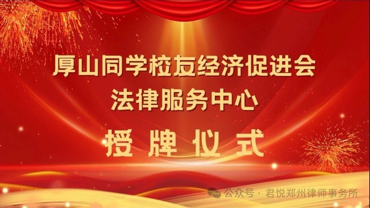 金秋时节,硕果飘香。9月24日上午,在这充满希望与协作气息的时节,我们迎来了厚山同学校友经济促进会法律服务中心上海君悦(郑州)律师事务所工作站的授牌仪式。此次仪式以“携手并进,共筑合规”为核心主题,标志着双方在为郑州大学校友企业提供专业法律服务、助力校友经济合规健康发展的道路上,迈出了坚实且重要的一步。