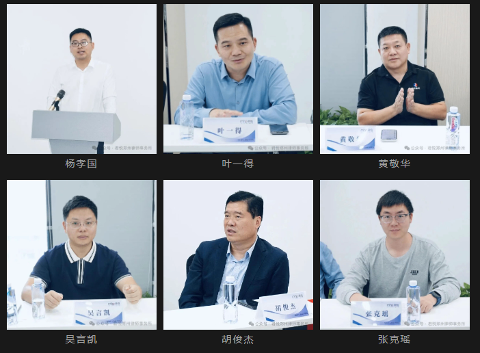 图片左起:胡俊杰、黄敬华、君悦郑州所主任赵朋、杨孝国、叶一得、张克瑶、吴言凯